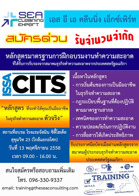 ผู้เขียน | หัวข้อ: หลักสูตรมาตรฐานการฝึกอบรมงานทำความสะอาด (CITS Professional 101) (อ่าน 275 ครั้ง) |