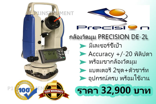 กล้องวัดมุมดิจิตอล ยี่ห้อ PRECISION DE2-L 2" ความละเอียด 2ฟิลิดา1.กล้องเล็งเป็นระบบเห็นภาพตั้งตรง