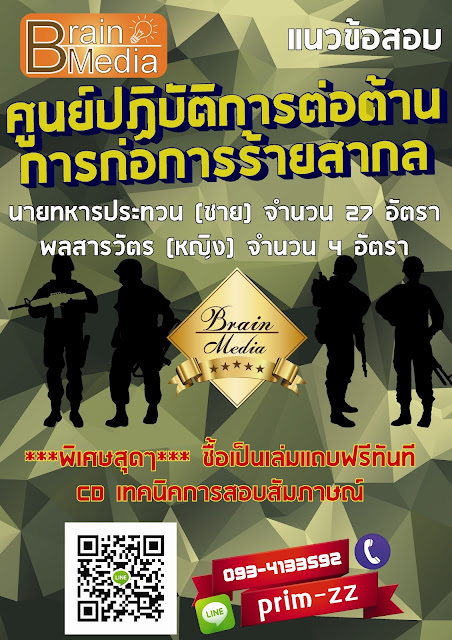 โหลดแนวข้อสอบนายทหารประทวน (ชาย) ศูนย์ปฏิบัติการต่อต้านการก่อการร้ายสากล