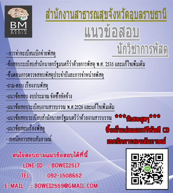 โหลดแนวข้อสอบ นักวิชาการพัสดุ สำนักงานสาธารณสุขจังหวัดอุบลราชธานี