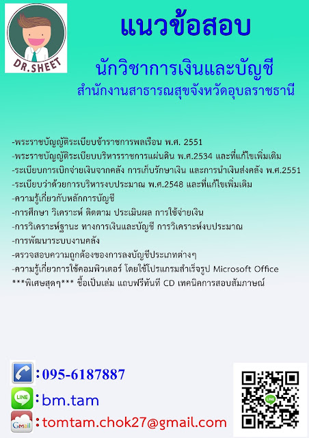 แนวข้อสอบนักวิชาการเงินและบัญชี สำนักงานสาธารณสุขจังหวัดอุบลราชธานี