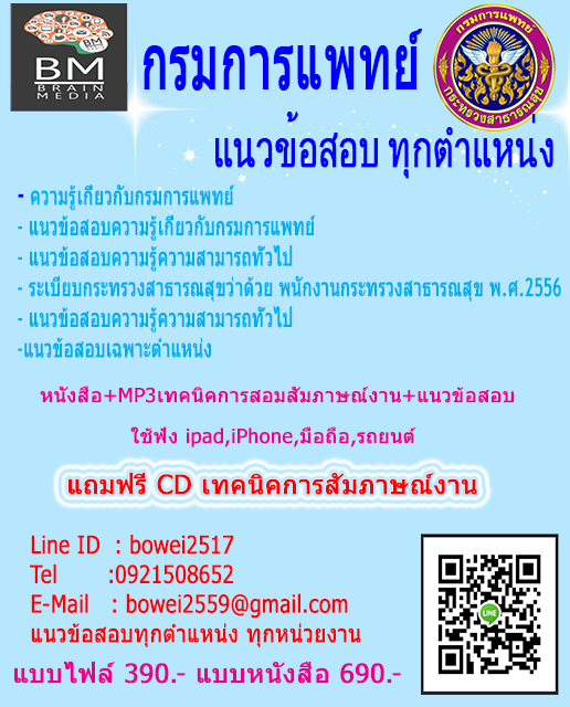 Tags : แนวข้อสอบ,กรมการแพทย์,ทุกตำแหน่ง