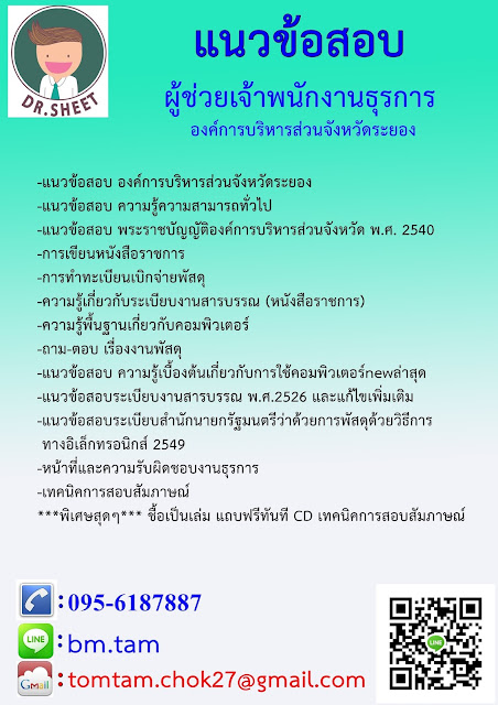 แนวข้อสอบผู้ช่วยเจ้าพนักงานธุรการ องค์การบริหารส่วนจังหวัดระยอง