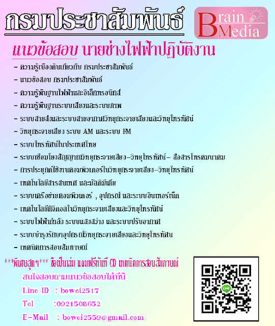 โหลดแนวข้อสอบ นายช่างไฟฟ้าปฏิบัติงาน กรมประชาสัมพันธ์