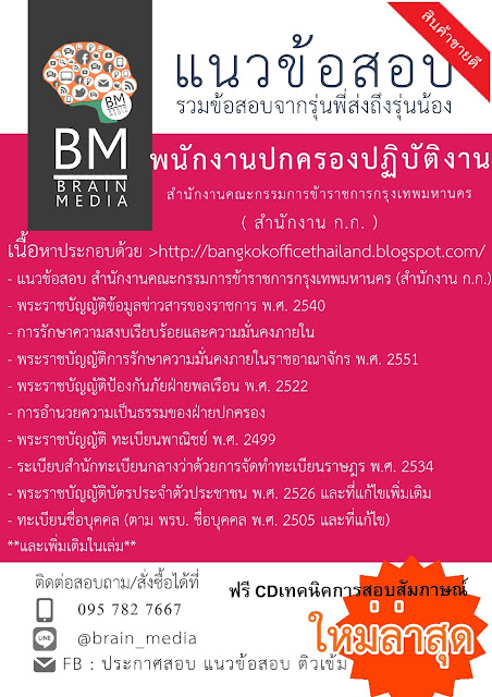 แนวข้อสอบพนักงานปกครองปฏิบัติงาน สํานักงานคณะกรรมการข้าราชการกรุงเทพมหานคร (สํานักงาน ก.