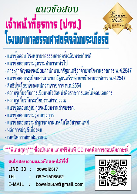 Tags : คู่มือเตรียมสอบเจ้าหน้าที่ธุรการ (ปวช.) โรงพยาบาลธรรมศาสตร์เฉลิมพระเกียรติ