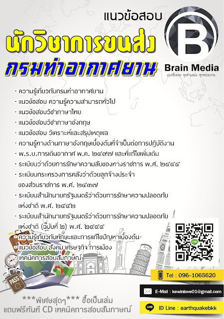[/url] - ความรู้เกี่ยวกับกรมท่าอากาศยาน- แนวข้อสอบ ความรู้ความสามารถทั่วไป - แนวข้อสอบวิชาภาษาไทย- แนวข้อสอบวิชาภาษาอังกฤษ- แนวข้อสอบ วิเคราะห์และสรุปเหตุผล- ความรู้ทางด้านภาษาอังกฤษเบื้องต้นที่จำเป็นต่อการปฏิบัติงาน- พ.ร.บ.การเดินอากาศ พ.ค. ๒๔๙๗ และที่แก้ไขเพิ่มเติม- ระเบียบกระทรวงการคลังว่าด้วยลูกจ้างประจำของส่วนราชการ พ.ศ. ๒๔๓๗- ระเบียบสำนักนายกรัฐมนตรีว่าด้วยการรักษาความปลอดภัยแห่งชาติ พ.ศ. ๒๔๔๒- ระเบียบสำนักนายกรัฐมนตรีว่าด้วยการรักษาความปลอดภัยแห่งชาติ (ฉบับที่ ๒) พ.ศ. ๒๔๔๔- ระเบียบว่าด้วยการรักษาความลับของทางราชการ พ.ศ. ๒๔๔๔- ความรู้เกี่ยวกับทักษะและการแก้ไขปัญหาเบื้องต้น- แนวข้อสอบ สังคม เศรษฐกิจ การเมือง- เทคนิคการสอบสัมภาษณ์***พิเศษสุดๆ*** ชื้อเป็นเล่ม แถบฟรีทันที CD เทคนิคการสอบสัมภาษณ์[/b]