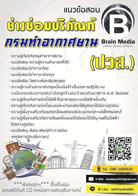 [/url]- ความรู้เกี่ยวกับกรมท่าอากาศยาน- แนวข้อสอบ ความรู้ความสามารถทั่วไป - แนวข้อสอบวิชาภาษาไทย- แนวข้อสอบวิชาภาษาอังกฤษ- แนวข้อสอบ วิเคราะห์และสรุปเหตุผล- ความรู้ทางด้านภาษาอังกฤษเบื้องต้นที่จำเป็นต่อการปฏิบัติงาน- ระเบียบกระทรวงการคลังว่าด้วยลูกจ้างประจำของส่วนราชการ พ.ศ. ๒๔๓๗- ความรู้เกี่ยวกับการติดตั้งไฟฟ้าในอาคารและวงจรไฟฟ้าเบื้องต้น- ความรู้เกี่ยวกับการติดตั้งระบบประปาและเลือกใช้อุปกรณ์ได้อย่างถูกต้อง- ความรู้พื้นฐานเกี่ยวกับอุปกรณ์คอมพิวเตอร์และอุปกรณ์ทางอิเล็กทรอนิกส์- ความรู้พื้นฐานเกี่ยวกับการซ่อมเครื่องยนต์ดีเซลและใช้วัสดุงานเชื่อมไฟฟ้าได้อย่างถูกต้อง- แนวข้อสอบ สังคม เศรษฐกิจ การเมือง- เทคนิคการสอบสัมภาษณ์***พิเศษสุดๆ*** ชื้อเป็นเล่ม แถบฟรีทันที CD เทคนิคการสอบสัมภาษณ์[/b]