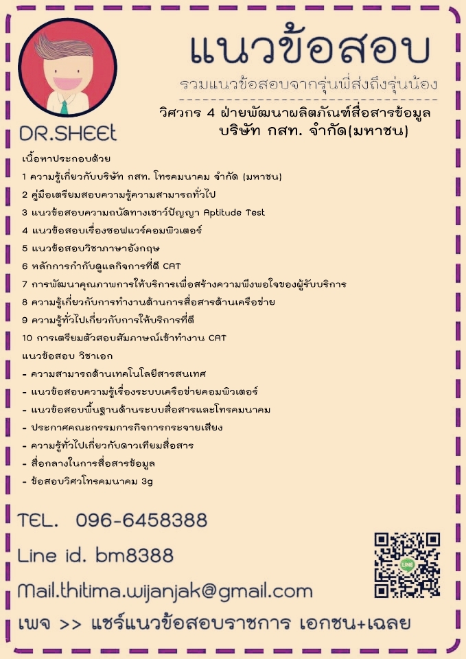 โหลดแนวข้อสอบ วิศวกร 4 ฝ่ายพัฒนาผลิตภัณฑ์สื่อสารข้อมูล บริษัท กสท โทรคมนาคม จำกั