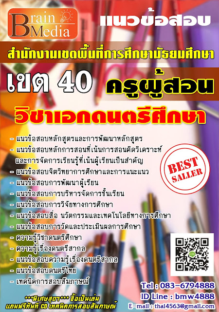 โหลดแนวข้อสอบ ครูผู้สอน วิชาเอกดนตรีศึกษา สำนักงานเขตพื้นที่การศึกษามัธยมศึกษา เขต 40