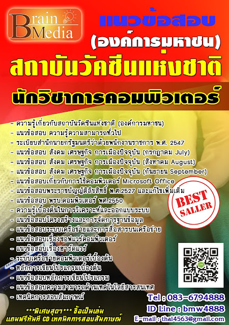 แนวข้อสอบ นักวิชาการคอมพิวเตอร์สถาบันวัคซีนแห่งชาติ (องค์การมหาชน)Tags : จำหน่ายแนวข้อสอบ ผู้ประสานงานโครงการสถาบันวัคซีนแห่งชาติ (องค์การมหาชน),แนวข้อสอบ นักวิชาการวัคซีน สถาบันวัคซีนแห่งชาติ (องค์การมหาชน)