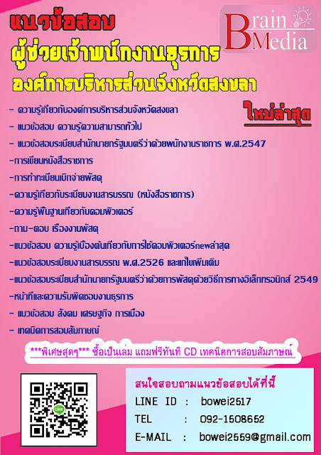 จำหน่ายแนวข้อสอบผู้ช่วยเจ้าพนักงานธุรการ องค์การบริหารส่วนจังหวัดสงขลา