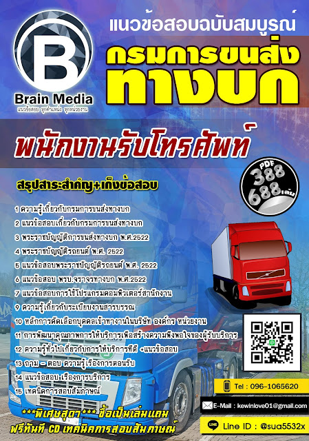 Brain Media หนังสือแนวข้อสอบพนักงานรับโทรศัพท์ กรมการขนส่งทางบก