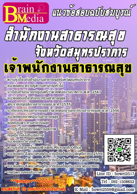 Tags : แนวข้อสอบ เจ้าพนักงานสาธารณสุข สำนักงานสาธารณสุขจังหวัดสมุทรปราการ