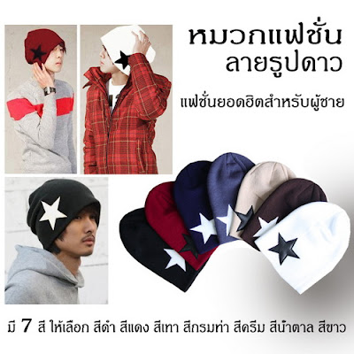 หมวกแฟชั่นผู้ชายรูปดาว หมวกแฟชั่นเกาหลี หมวกผู้ชาย หมวกไหมพรมชาย
