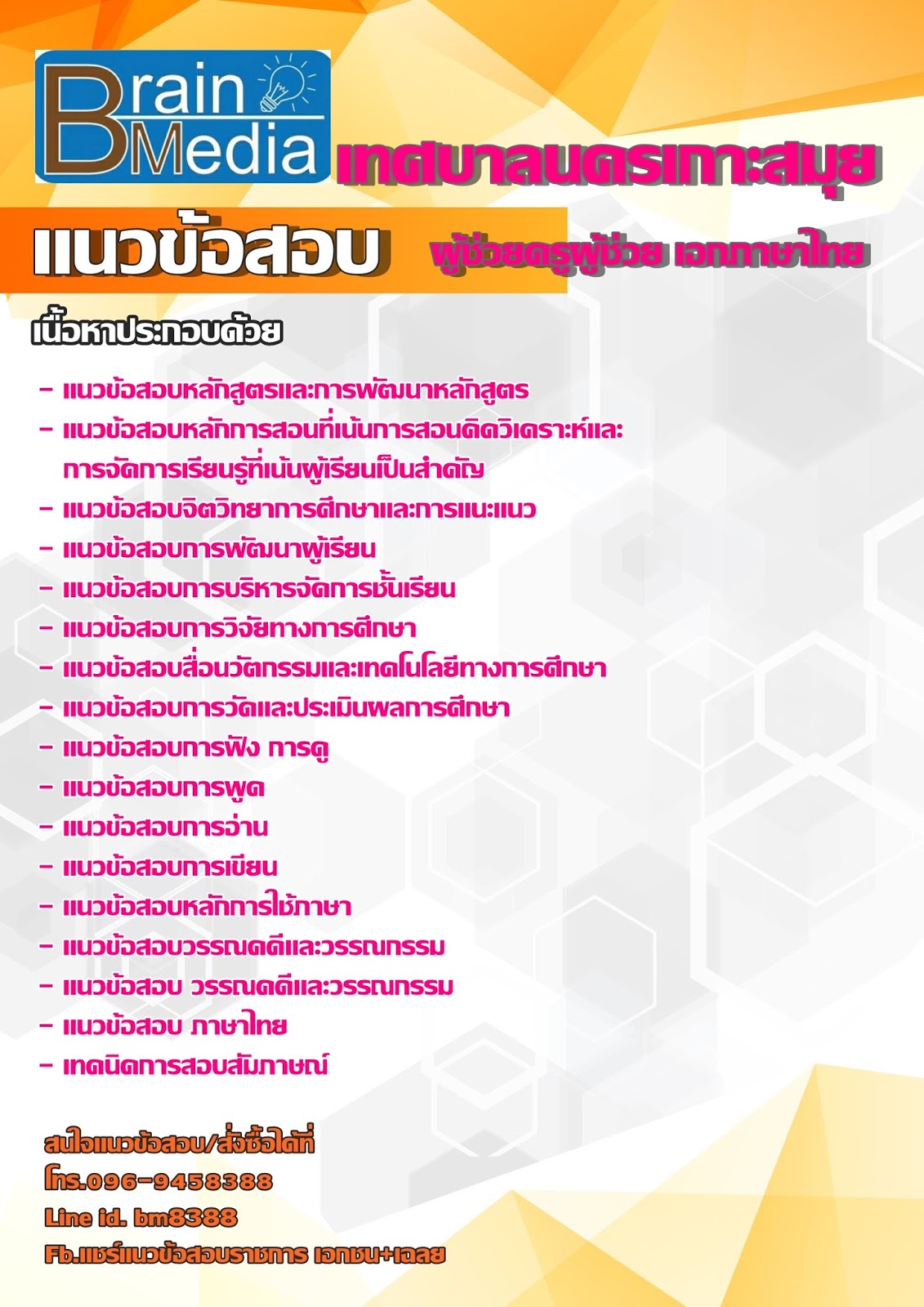 โหลดแนวข้อสอบ ผู้ช่วยครูผู้ช่วย เอกภาษาไทย เทศบาลนครเกาะสมุย