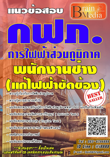 โหลดแนวข้อสอบ พนักงานช่าง (แก้ไฟฟ้าขัดข้อง) การไฟฟ้าส่วนภูมิภาค (กฟภ.)