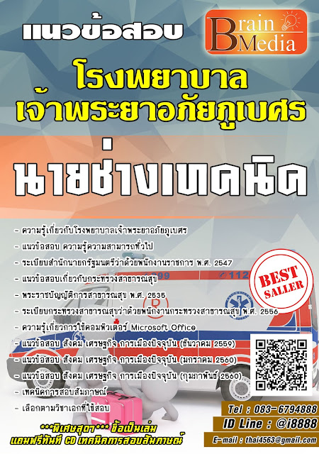 โหลดแนวข้อสอบ นายช่างเทคนิค โรงพยาบาลเจ้าพระยาอภัยภูเบศร