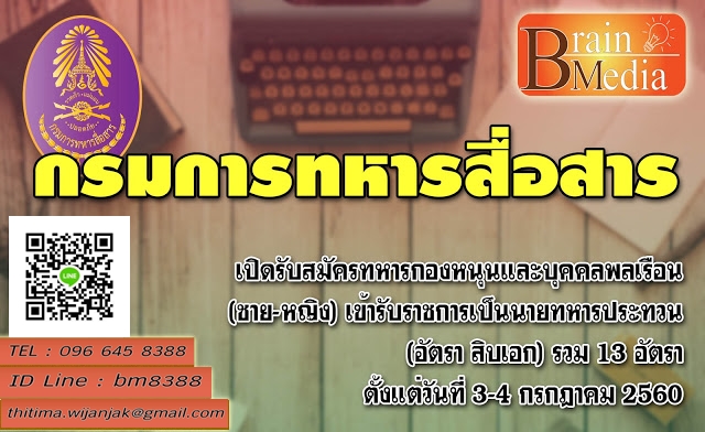 กรมการทหารสื่อส- นายทหารประทวน/บุคคลพลเรือนชาย จำนวน 8 อัตรา