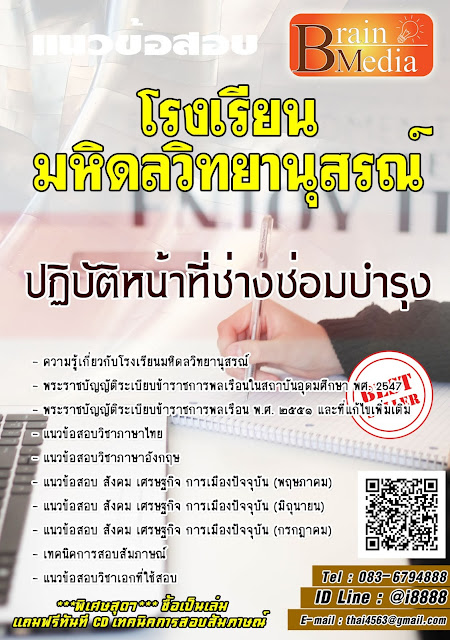 โหลดแนวข้อสอบ ปฏิบัติหน้าที่ช่างซ่อมบำรุง โรงเรียนมหิดลวิทยานุสรณ์