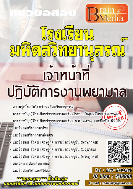 โหลดแนวข้อสอบ เจ้าหน้าที่ปฏิบัติการงานพยาบาล โรงเรียนมหิดลวิทยานุสรณ์