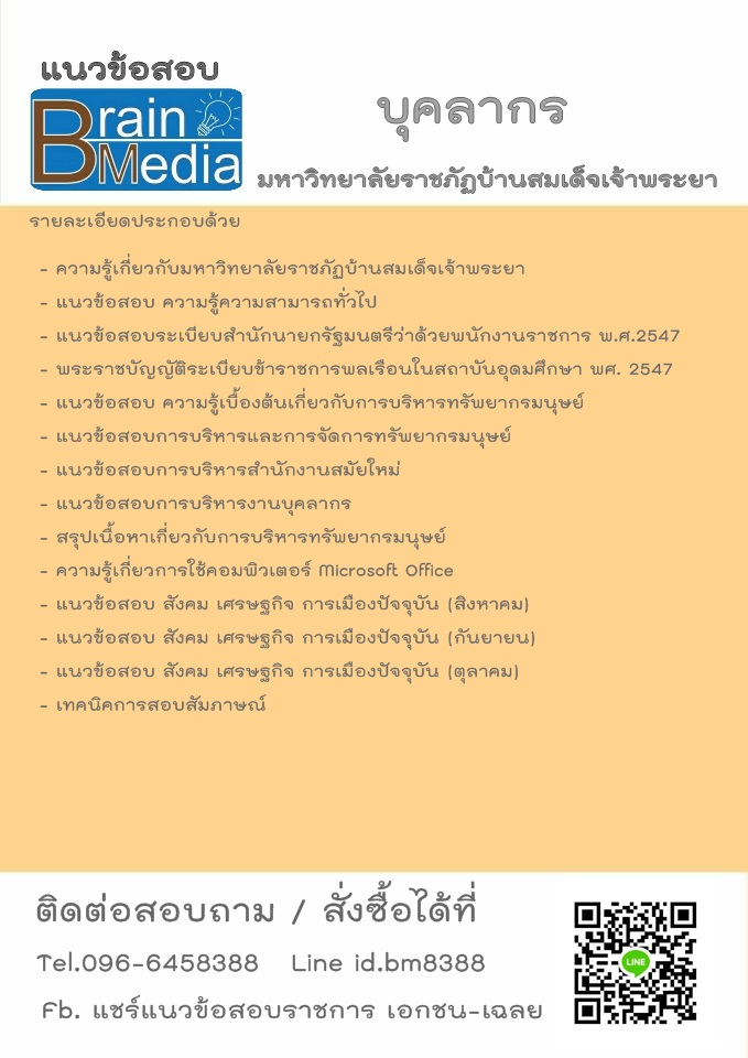โหลดแนวข้อสอบ บุคลากร มหาวิทยาลัยราชภัฏบ้านสมเด็จเจ้าพระยา