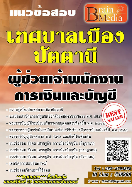 จำหน่ายแนวข้อสอบ ผู้ช่วยเจ้าพนักงานการเงินและบัญชี เทศบาลเมืองปัตตานี ทุกตำแหน่งTags : แนวข้อสอบ ผู้ช่วยเจ้าหน้าที่พัสดุเทศบาลเมืองปัตตานี ทุกตำแหน่ง