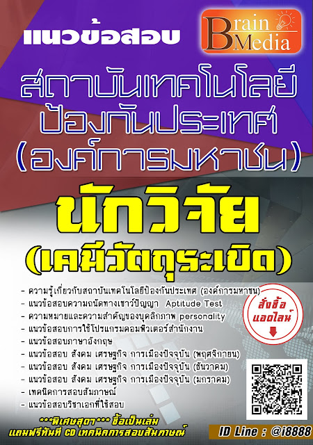 จำหน่ายแนวข้อสอบ นักวิจัย (เคมีวัตถุระเบิด) สถาบันเทคโนโลยีป้องกันประเทศ (องค์กา