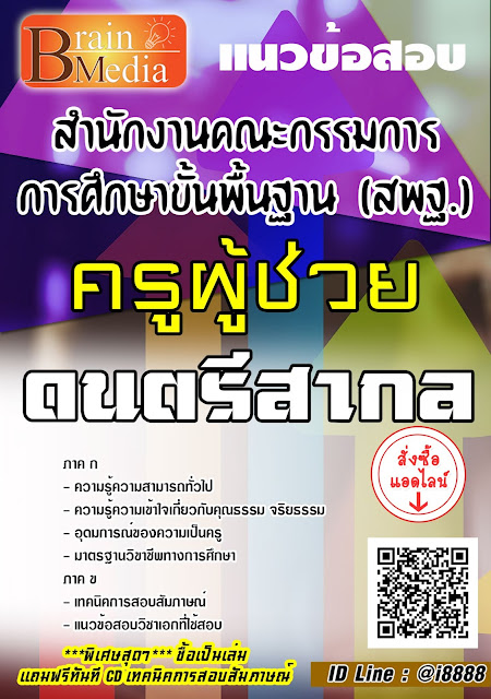 แนวข้อสอบ ครูผู้ช่วย ดนตรีสากล สพฐ.Tags : คู่มือเตรียมสอบครูผู้ช่วย ดนตรีสากล สพฐ.,จำหน่ายแนวข้อสอบ ครูผู้ช่วย ดนตรีสากล สพฐ.