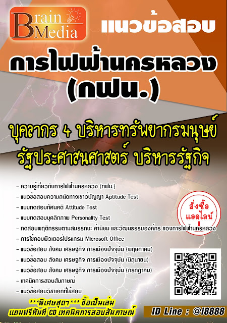 โหลดแนวข้อสอบ บุคลากร 4 บริหารทรัพยากรมนุษย์ รัฐประศาสนศาสตร์ บริหารรัฐกิจ การไฟฟ้านครหลวง (กฟน.)
