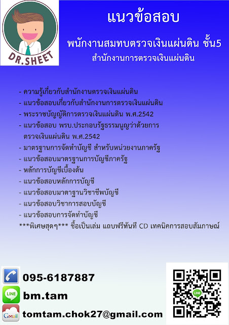แนวข้อสอบพนักงานสมทบตรวจเงินแผ่นดิน ชั้น5  สำนักงานการตรวจเงินแผ่นดิน