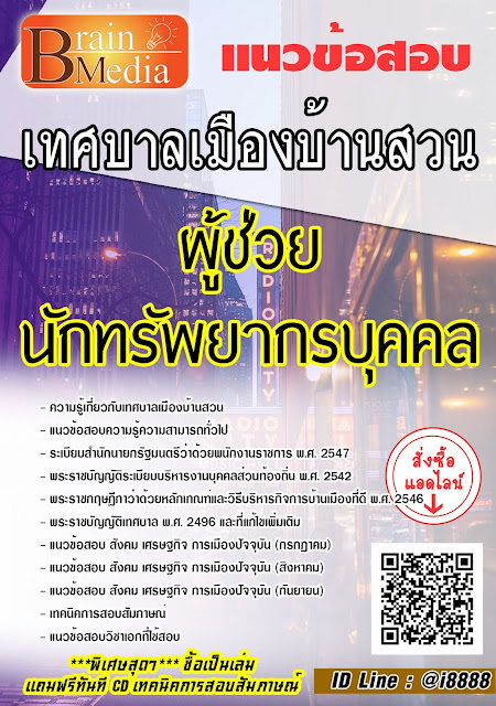 โหลดแนวข้อสอบ ผู้ช่วยนักทรัพยากรบุคคล เทศบาลเมืองบ้านสวน