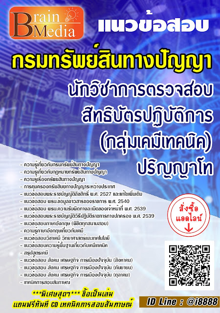 โหลดแนวข้อสอบ นักวิชาการตรวจสอบสิทธิบัตรปฏิบัติการ ปริญญาโท (กลุ่มเคมีเทคนิค) กรมทรัพย์สินทางปัญญา