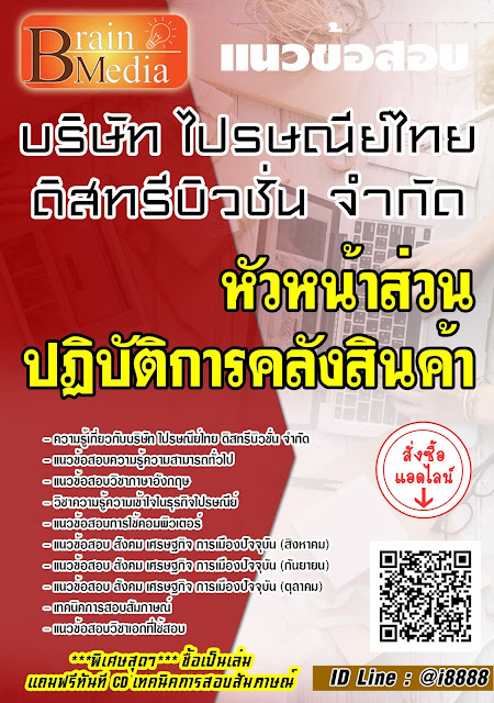 โหลดแนวข้อสอบ หัวหน้าส่วนปฏิบัติการคลังสินค้า บริษัท ไปรษณีย์ไทย ดิสทรีบิวชั่น จำกัด