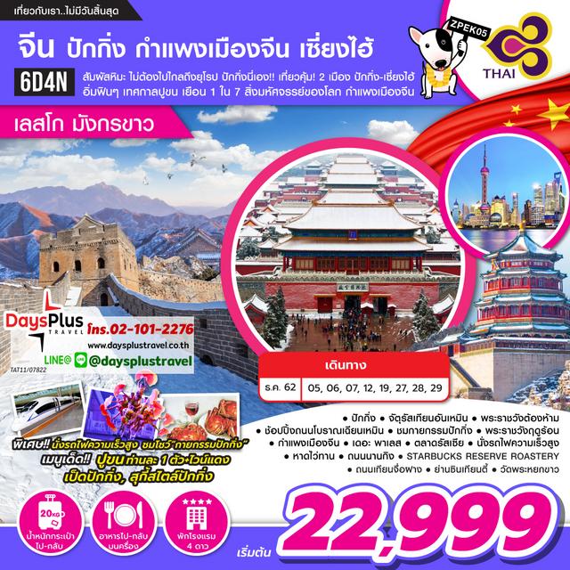 ทัวร์จีน ปักกิ่ง กำแพงเมืองจีน เซี่ยงไฮ้ [เลสโก มังกรขาว]6 วัน 4 คืน