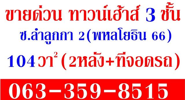 ทาวเฮ้าส์ 3 ชั้น ขนาด 22 ตรว. 2 คูหา ซอย.พหลโยธิน66 (ซอยใหญ่รถ-วิ่งสวนกันได้)