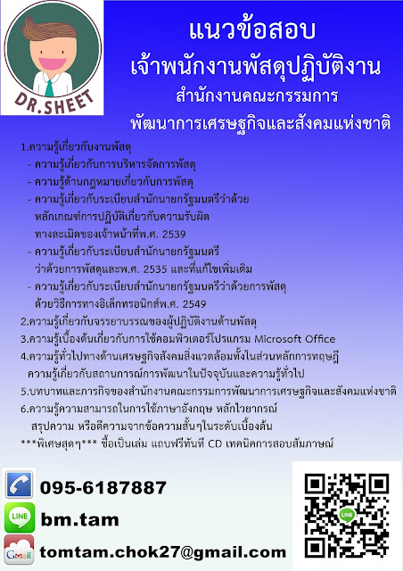 แนวข้อสอบเจ้าพนักงานพัสดุปฏิบัติงาน สำนักงานคณะกรรมการพัฒนาการเศรษฐกิจและสังคมแห่งชาติ
