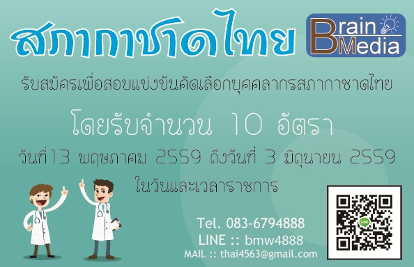 ประกาศ สภากาชาดไทย รับสมัครเพื่อสอบแข่งขันคัดเลือกบุคคลากรสภากาชาดไทย โดยรับจำนวน 10 อัตรา วัน/เวลา และสถานที่รับสมัคร รับสมัครที่ฝ่ายบรหารงานบุคคลและทะเบียนประวัติ สำนักงานบริหารทรัพยากรบุคคล สภากาชาดไทย ชั้น 3 อาคารรเฉลิม บูรณะนนท์ เลขที่ 1871 ถนนอังรีดูนังต์ แขวงวังใหม่ เขตปทุมวัน กรุงเทพฯ 10330 โทร. 0 2256 4054, 08 9938 9155 ตั้งแต่ วันที่13 พฤษภาคม 2559 ถึงวันที่ 3 มิถุนายน 2559 ในวันและเวลาราชการ ดาวน์โหลดใบสมัครได้ที่  [url=http://www.redcross.or.th/" target="_blank]http://www.redcross.or.th [/url]หัวข้อ “สมัครงาน” รายละเอียดเพิ่มเติมตามเอกสาร : [url=http://www.redcross.or.th/sites/default/files/uploads/job/2016/05/12/20160512_53768_50229_104.pdf" target="_blank]ไฟล์แนโหลดแนวข้อสอบ เจ้าหน้าที่ระบบงานคอมพิวเตอร์ สภากาชาดไทย