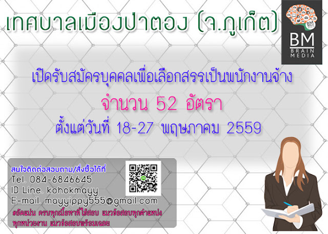 สมัครได้ด้วยตนเอง ณ งานเจ้าหน้าที่ สำนักปลัดเทศบาล ชั้น 2 สำนักงานเทศบาลเมืองป่าตอง อ.กะทู้ จ.ภูเก็ต ตั้งแต่วันที่ 18-27 พฤษภาคม 2559 ในวันและเวลาราชการรายละเอียดเพิ่มเติ[/b]