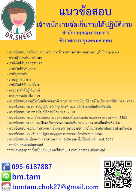 แนวข้อสอบเจ้าพนักงานจัดเก็บรายได้ปฏิบัติงาน สํานักงานคณะกรรมการข้าราชการกรุงเทพมหานคร (สํานักงาน ก.ก.)