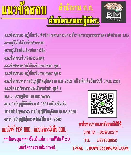 แนวข้อสอบ เจ้าพนักงานเกษตรปฏิบัติงาน สํานักงานคณะกรรมการข้าราชการกรุงเทพมหานคร (สํานักงาน ก.ก.)