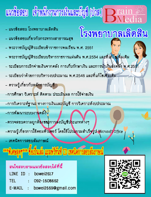 แนวข้อสอบ เจ้าพนักงานการเงินและบัญชี (ปวส.) โรงพยาบาลเลิดสิน