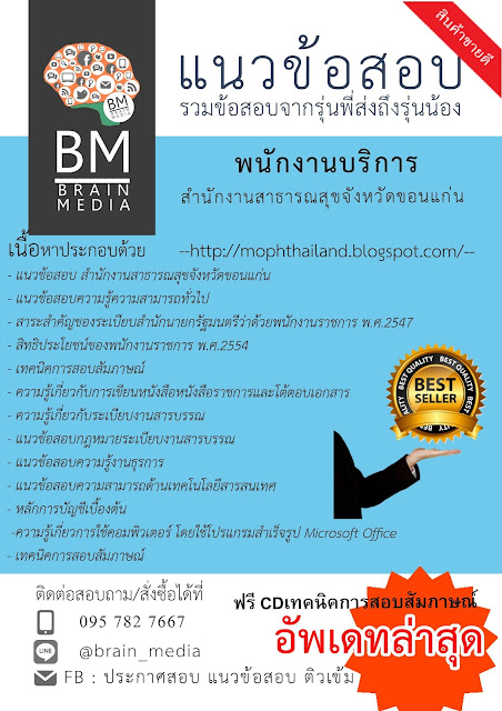 แนวข้อสอบพนักงานบริการสำนักงานสาธารณสุขจังหวัดขอนแก่น[/b]