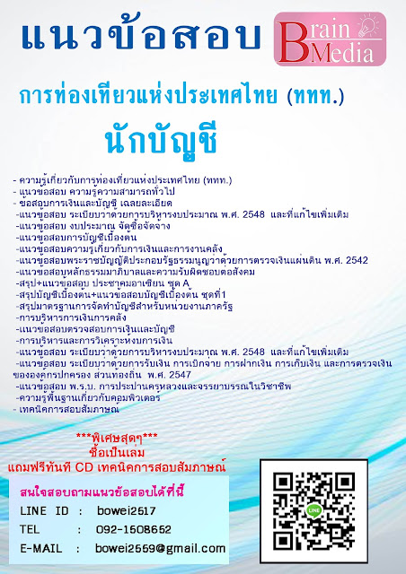โหลดแนวข้อสอบงานราชการ นักบัญชี การท่องเที่ยวแห่งประเทศไทย (ททท.)Tags : แนวข้อสอบ นักบัญชี การท่องเที่ยวแห่งประเทศไทย (ททท.),จำหน่ายแนวข้อสอบ นักบัญชี การท่องเที่ยวแห่งประเทศไทย (ททท.)