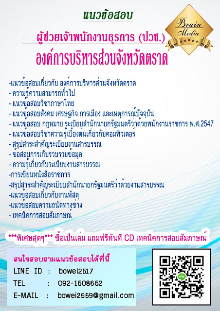 ผู้เขียน | หัวข้อ: LOADแนวข้อสอบผู้ช่วยเจ้าพนักงานธุรการ (ปวช.) องค์การบริหารส่วนจังหวัดตราด (อ่าน 33 ครั้ง) |