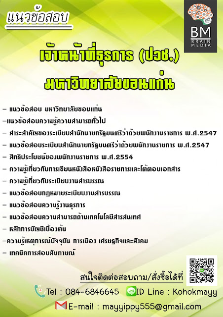 แจกฟรีสรุปเนื้อหา เจ้าหน้าที่ธุรการ (ปวช.) มหาวิทยาลัยขอนแก่น
