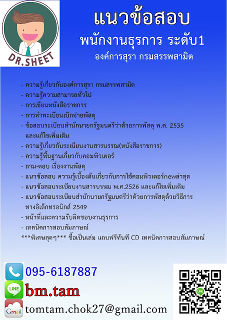 แนวข้อสอบพนักงานธุรการ ระดับ1 องค์การสุรา กรมสรรพสามิต