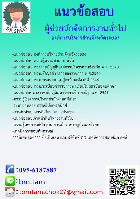 แนวข้อสอบผู้ช่วยนักจัดการงานทั่วไป องค์การบริหารส่วนจังหวัดระยอง