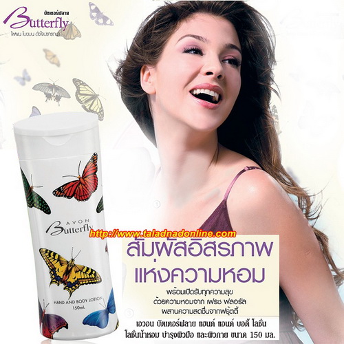 โลชั่นน้ำหอมบำรุงผิว Avon Butterfly Hand and body lotion โลชั่นบำรุงผิวกาย ให้ความรู้สึกเต็มเปี่ยมไปด้วยอิสระ เพิ่มความเนียนนุ่ม ชุ่มชื่นแก่ผิว เนื้อครีมบางเบา ไม่เหนียวเหนอะหนะ อ่อนโอนแม้ผิวแพ้ง่าย เผยผิวดูเนียนเรียบ พร้อมมอบสัมผัสแห่งความสวยงามทั่วเรือนร่าง