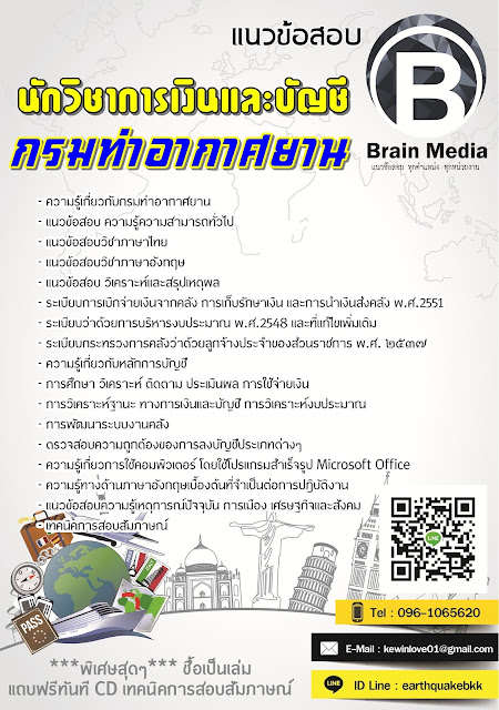[/url] - ความรู้เกี่ยวกับกรมท่าอากาศยาน- แนวข้อสอบ ความรู้ความสามารถทั่วไป - แนวข้อสอบวิชาภาษาไทย- แนวข้อสอบวิชาภาษาอังกฤษ- แนวข้อสอบ วิเคราะห์และสรุปเหตุผล- ความรู้ทางด้านภาษาอังกฤษเบื้องต้นที่จำเป็นต่อการปฏิบัติงาน- ระเบียบการเบิกจ่ายเงินจากคลัง การเก็บรักษาเงิน และการนำเงินส่งคลัง พ.ศ.2551- ระเบียบว่าด้วยการบริหารงบประมาณ พ.ศ.2548 และที่แก้ไขเพิ่มเติม- ระเบียบกระทรวงการคลังว่าด้วยลูกจ้างประจำของส่วนราชการ พ.ศ. ๒๕๓๗- ความรู้เกี่ยวกับหลักการบัญชี- การศึกษา วิเคราะห์ ติดตาม ประเมินผล การใช้จ่ายเงิน- การวิเคราะห์ฐานะ ทางการเงินและบัญชี การวิเคราะห์งบประมาณ- การพัฒนาระบบงานคลัง- ตรวจสอบความถูกต้องของการลงบัญชีประเภทต่างๆ- ความรู้เกี่ยวการใช้คอมพิวเตอร์ โดยใช้โปรแกรมสำเร็จรูป Microsoft Office- แนวข้อสอบ สังคม เศรษฐกิจ การเมือง- เทคนิคการสอบสัมภาษณ์***พิเศษสุดๆ*** ชื้อเป็นเล่ม แถบฟรีทันที CD เทคนิคการสอบสัมภาษณ์[/b]